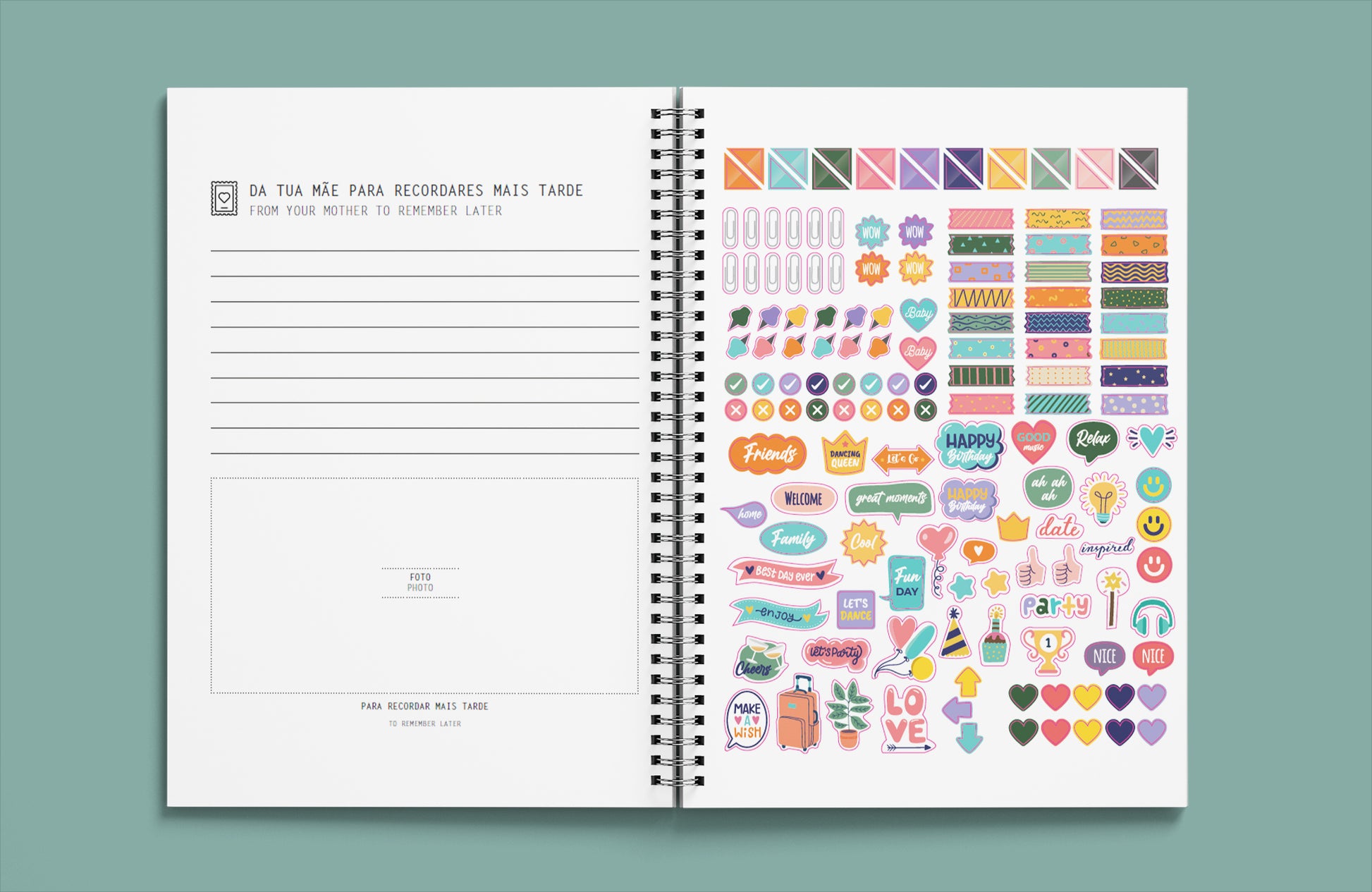📚 Cada álbum tem 88 páginas e 1 de stickers e mede 21x26 cm, o tamanho perfeito para escrever, colar fotografias e eternizar momentos.