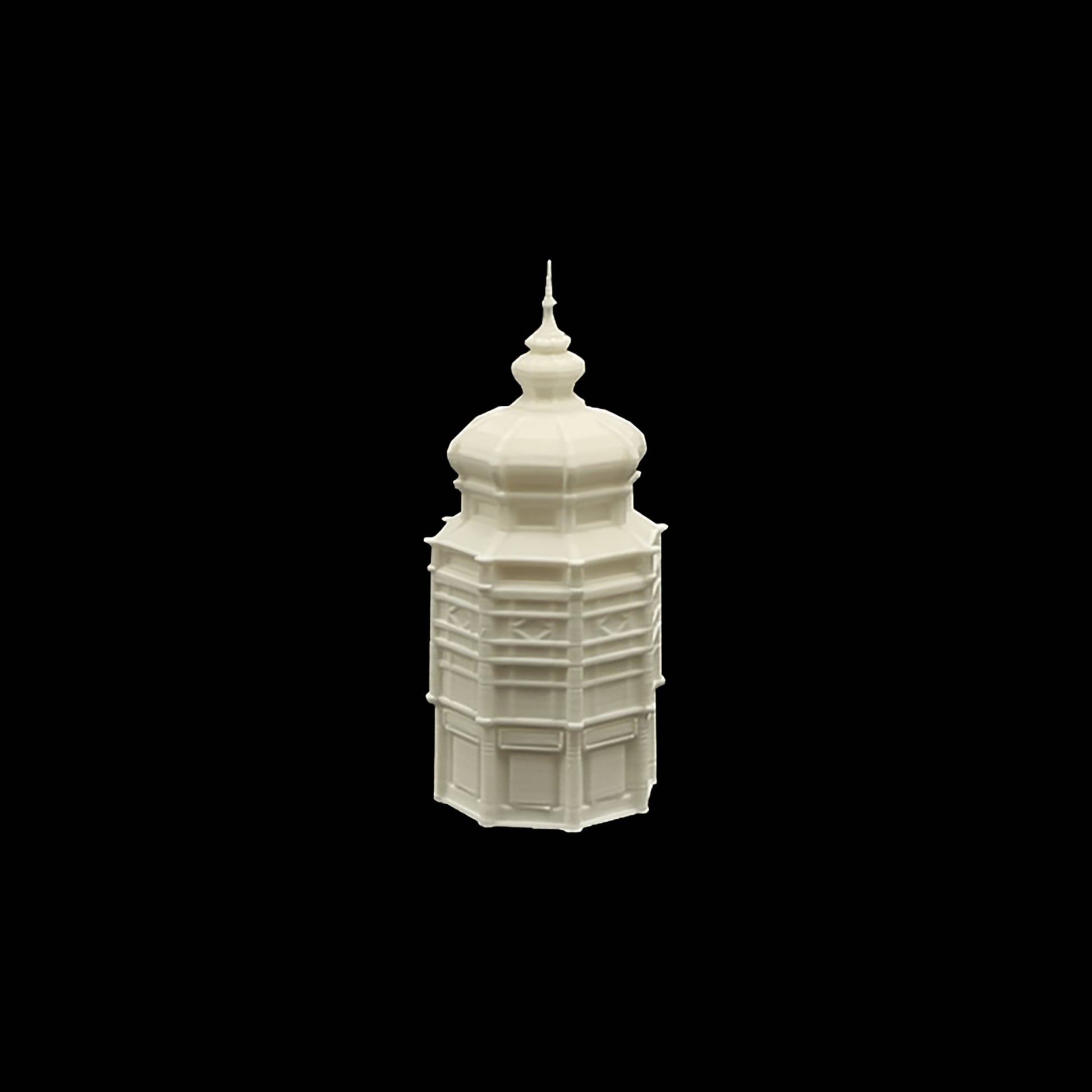 Porto em forma de arte. Esta miniatura 3D representa com detalhe um dos quiosques mais emblemáticos da cidade, captando o charme e a arquitetura característica das ruas portuenses. Moldada em resina ecológica de tom natural.